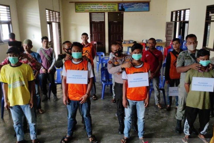 MASAKINI.CO — Puluhan warga di Kecamatan Meureubo, Kabupaten Aceh Barat, dikenakan sanksi menyanyi Lagu Kebangsaan Indonesia Raya setelah terjaring operasi yustisi penerapan protokol kesehatan oleh tim gabungan melibatkan personel kepolisian bersama TNI, Satpol PP di Kabupaten Aceh Barat, Jumat (2/10).