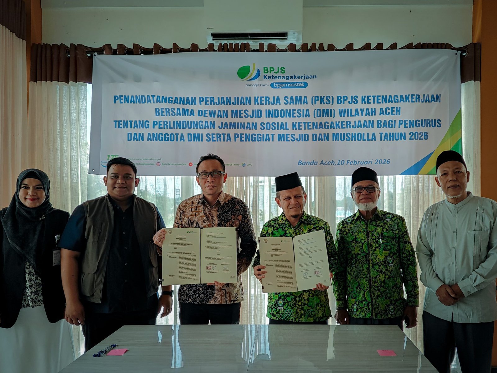 MASAKINI.CO – BPJS Ketenagakerjaan Wilayah Sumbagut menandatangani perjanjian kerja sama dengan Dewan Masjid Indonesia (DMI) Wilayah Aceh, pada Selasa (10/2/2026).